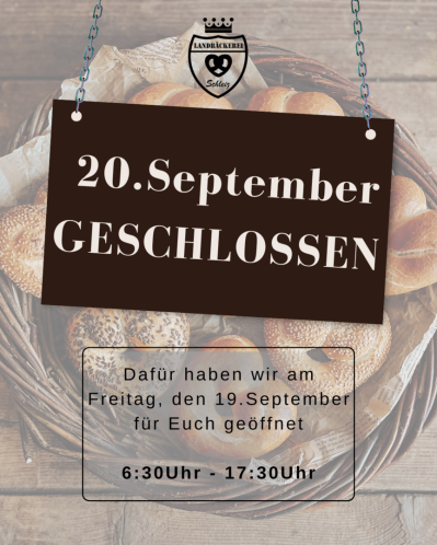 Am 20.September bleiben unsere Filialen geschlossen