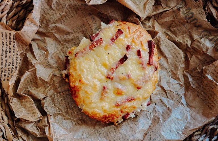 Leckeres Weizenbrötchen mit Milch und mit Schinken und Käse überbacken - ein idealer Snack für Groß und Klein.