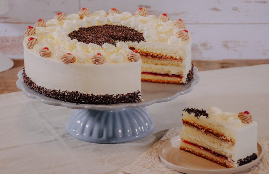 Vanille-Buttercreme zwischen lockeren Biskuitböden