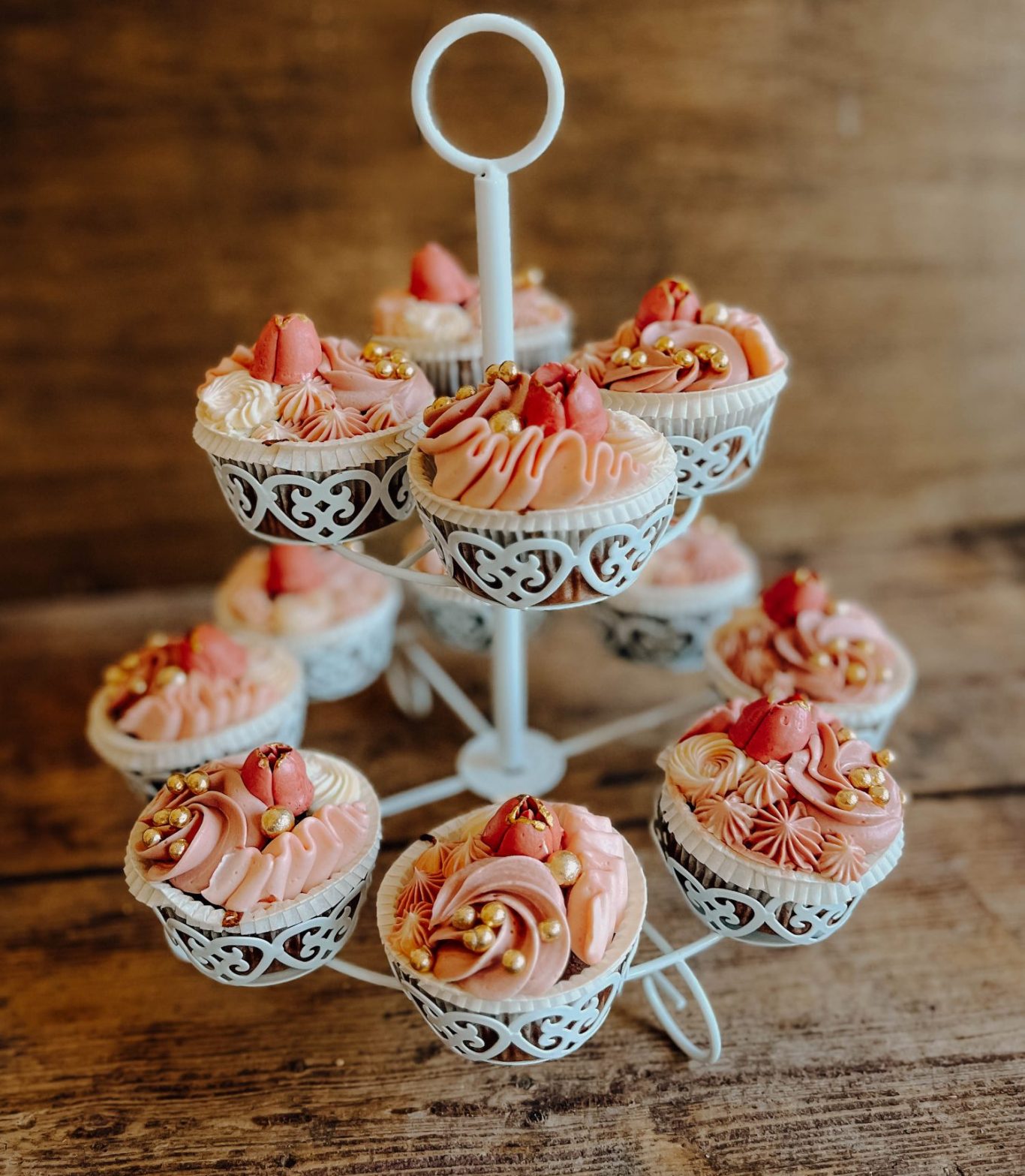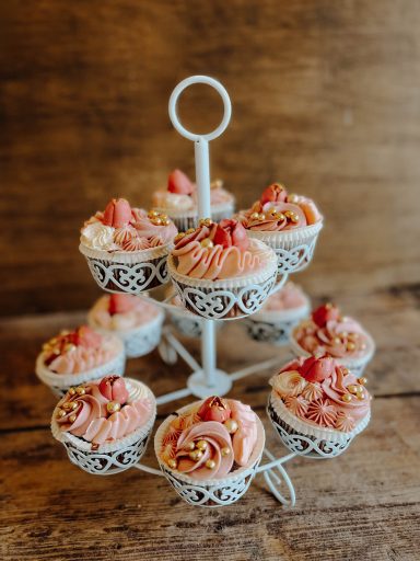 Gerne kannst du dir eine Cupcake-Etagere dafür ausleihen. Auf die Etagere passen 12 Cupcaks.