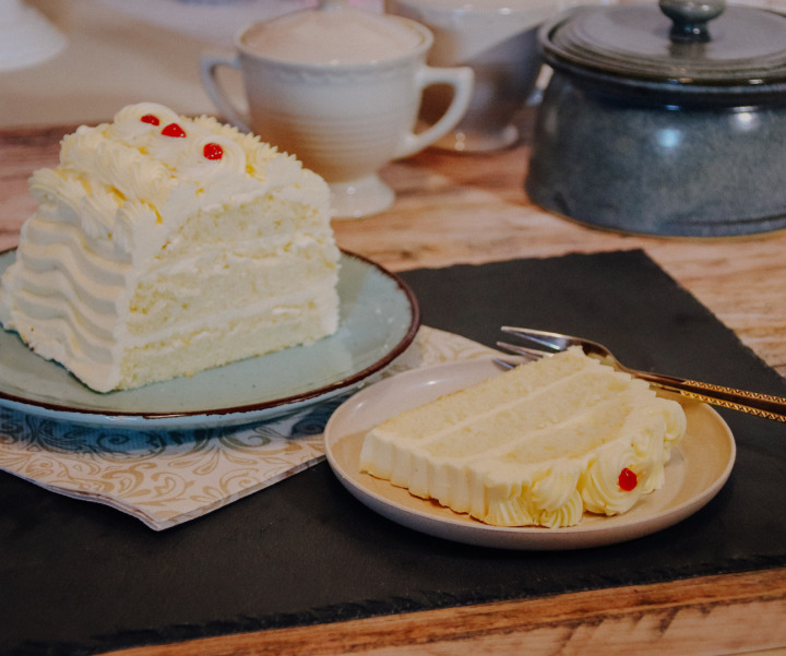 Vanille-Buttercreme zwischen lockeren Biskuitböden