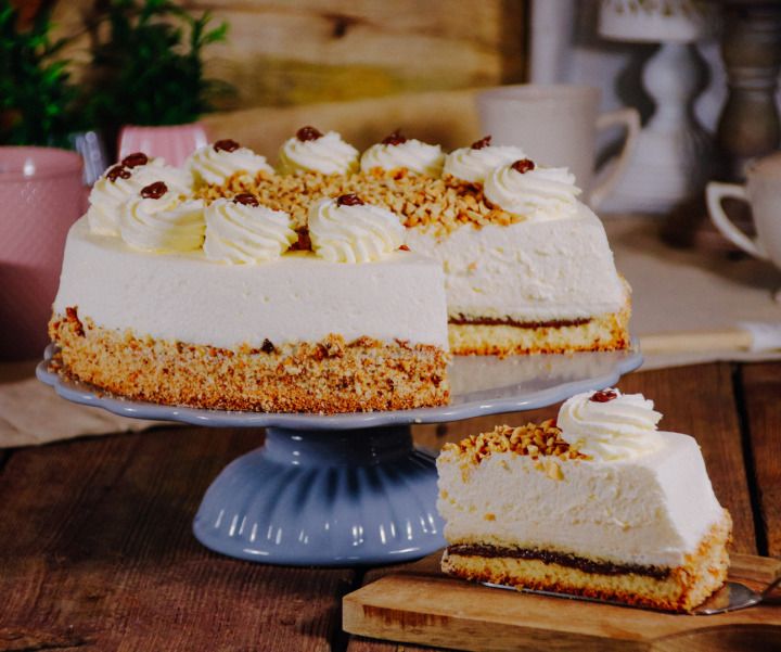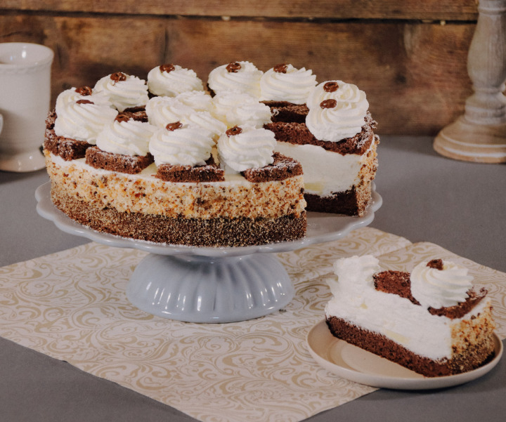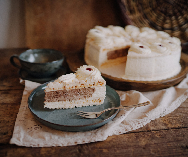 Nur auf Bestellung erhältlich als große 16-teilige Torte und Baiser-Eiche