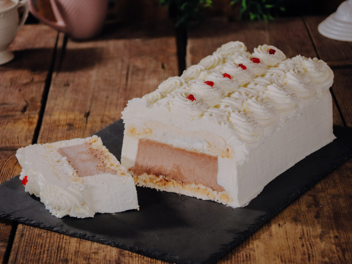 Die Baisertorte ist gefroren und und schmeckt am besten, wenn sie ca. 1h vor dem Servieren bei Zimmertemperatur leicht angetaut wird.